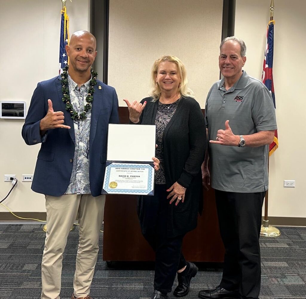 FBI Honolulu Special Agent in Charge David K. Porter was the featured guest speaker at our January 2026 ASIS Hawai‘i Chapter meeting, where he shared his perspectives on the FBI’s mission in Hawai‘i and outlined key priorities guiding the Bureau’s work in our community. Pictured here (from left): FBI Honolulu SAC Porter,Debra Allen, ASIS Member and Managing Agent of 808 Investigations, LLC, and Robert Cravalho, PCI, Secretary of the ASIS Hawai‘i Chapter. A special mahalo to Debra for generously sponsoring the meeting lunch and supporting the Chapter.
